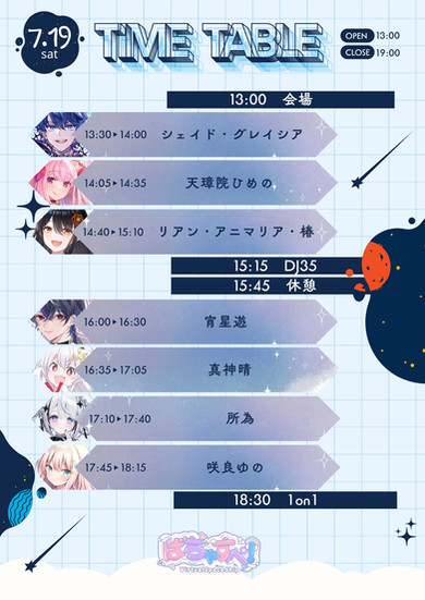 咲良ゆの, リアン・アニマリア・椿, 宵星遊, シェイド・グレイシア, 真神晴, 所為, 天璋院ひめの